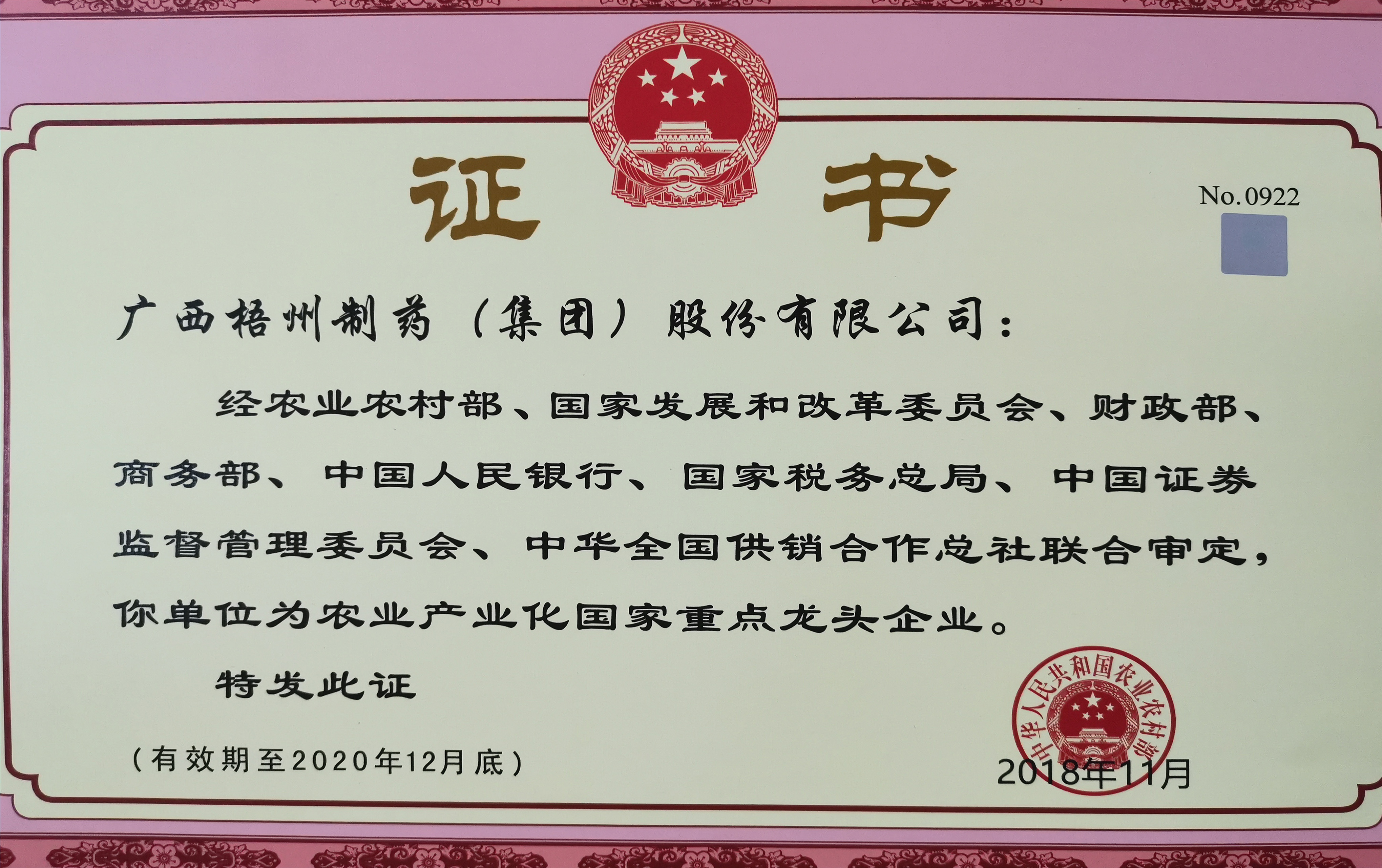 經(jīng)農(nóng)業(yè)農(nóng)村部、國家發(fā)展和改革委員會(huì)、財(cái)政部、商務(wù)部、中國人民銀行、國家稅務(wù)總局、中國證卷監(jiān)督管理委員會(huì)、中華全國供銷合作總社聯(lián)合審定,評為農(nóng)業(yè)產(chǎn)業(yè)化國家重點(diǎn)龍頭企業(yè)。